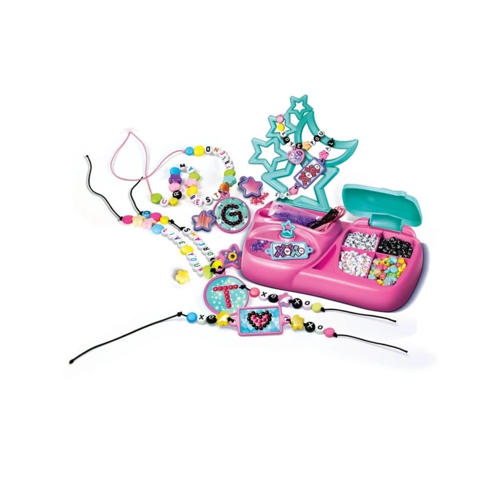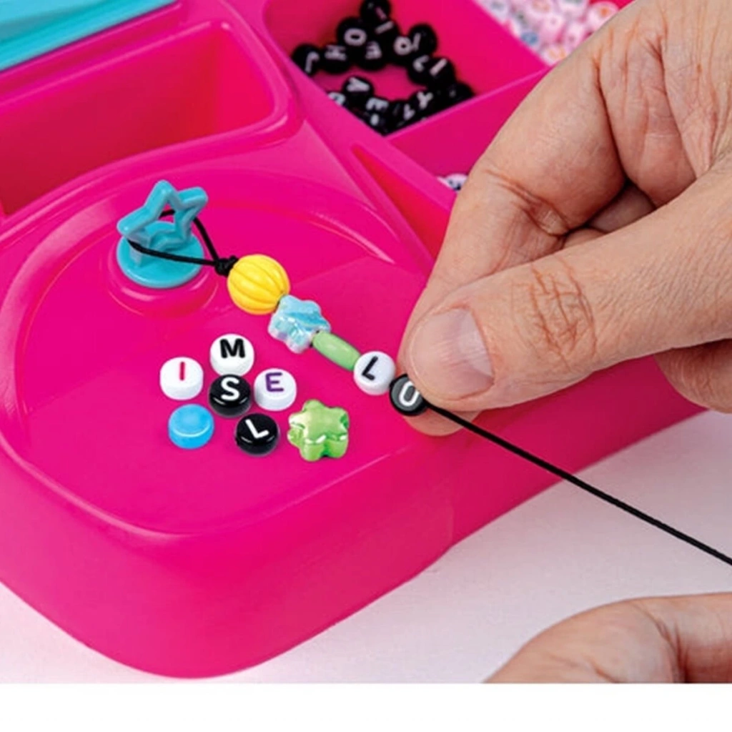 -Son moda takı trendlerini çizgisinde kendi eşsiz çizginizi yansıtabileceğiniz yepyeni bir Crazy Chic bileklik seti. -Harfler, renkli boncuklar, ışıltılı taşlar ve lastikli kordonlar ile son modaya uygun takı ve aksesuarlar oluşturabileceğiniz bir set. -Oyun tabanı üç bölüme ayrılmıştır: kolye ve plakaları renkli taşlarla süslemek için bir alan, boncukları gruplandırmak için bir bölme ve tüm kreasyonları saklamak için bir takı kutusu. -Herkesin yaratıcılığını ve benzersiz stilini ifade edebilmesi için adınızı veya favori ifadelerinizi yazabileceğiniz parlak renkli bilezikler ve kolyeler. -Yaş bilgisi:7+ -Kutu boyutu: 38.5 x 28.5 x 7.8 cm
