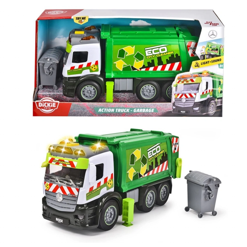 Ayrıca, itildiğinde aracı birkaç metre ileri iten yerleşik bir sürtünme motoruna sahiptir. Bu serideki diğer iki aracı, Dickie Toys Recycling (203745015) ve Dickie Toys Recovery Truck'ı (203745016) incelemeyi unutmayın. Işık ve ses efektleri Çöp aracı, diğer yol kullanıcılarını uyarmak için gerçekçi ses efektlerine ve turuncu bir uyarı ışığına sahiptir.