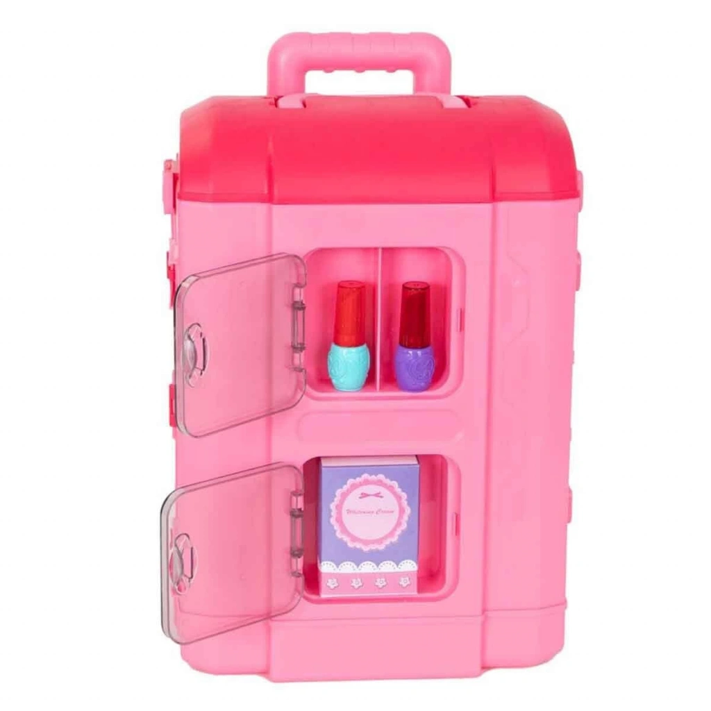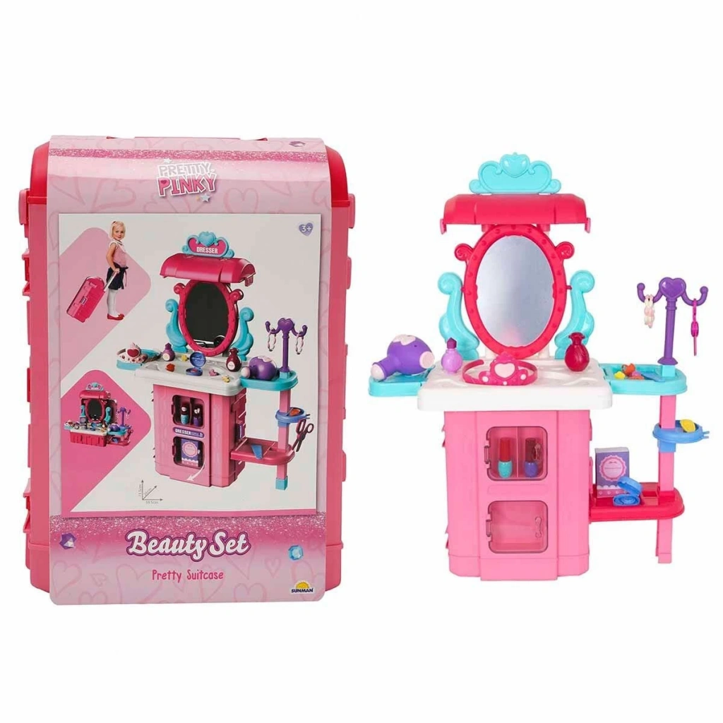 Pretty Pinky'nin 3'ü 1 arada oyun seti, bu mobil giyinme odasıyla oynarken hem eğlenmek hem de deneyimlemek isteyen küçük moda tutkunları için mükemmel. Set, miniklerin yaratıcılıklarını hayranlıkla izleyebilmeleri ve makyaj seanslarına özel bir oyun alanı oluşturmaları için standlı bir ayna içeriyor.