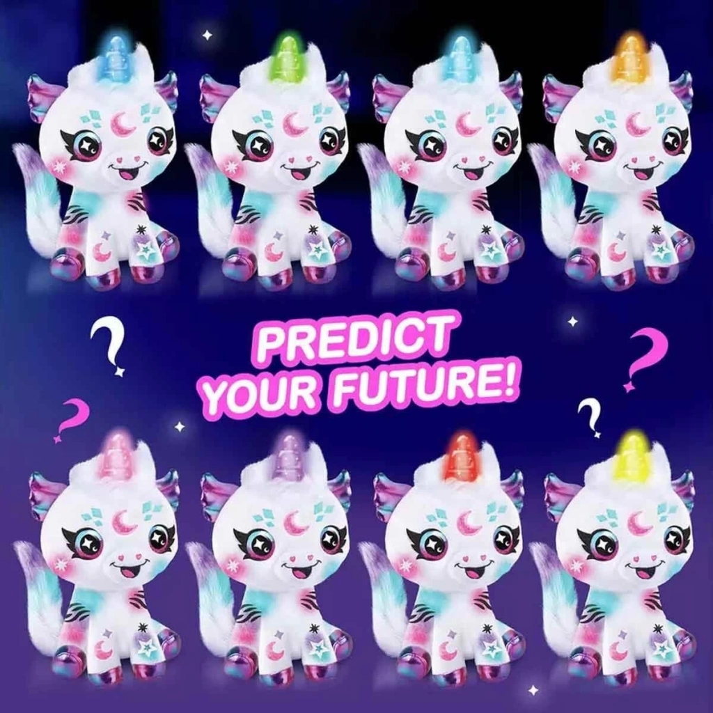 Kişiselleştirdiğin ve kendi ellerinle oluşturduğun pelüşün daha farklı görünmesini mi istiyorsun? O zaman onu yıkayabilir ve bembeyaz bir pelüş haline geldikten sonra Işıklı Airbrush Peluş Cosmic Unicorn’u tasarlamaya en baştan başlayabilirsin. Bu unicorn senin geleceğin ile ilgili tahminlerde bulunabiliyor! O zaman haydi soru sor ve sana ne yanıt veriyor görelim. Evet-hayır sorularına boynuzundan çıkan ışığın rengi ile cevap veriyor. Unicorn, benim en sevdiğim renk sarı mı?