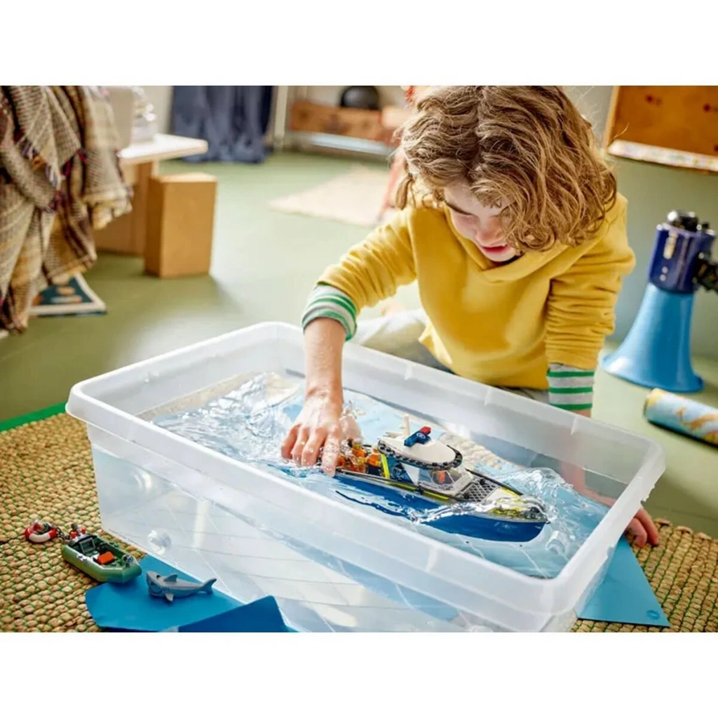 Küçük kahramanlar, bu LEGO® City Polis Teknesi Takibi (60456) oyun setine bayılacak. 6 yaş ve üzeri model severler için mükemmel olan bu sette dıştan takma ikiz motorları ve gözaltı hücresi olan bir oyuncak polis teknesi, ayrıca hırsızın sürat botu var. Çocuklar her iki tekneyi de suda yüzdürebilir ve 2 polis memuru, bir hırsız, bir köpek balığı ve çalıntı yakut ile heyecan verici polis kovalamacası maceralarına atılabilir!