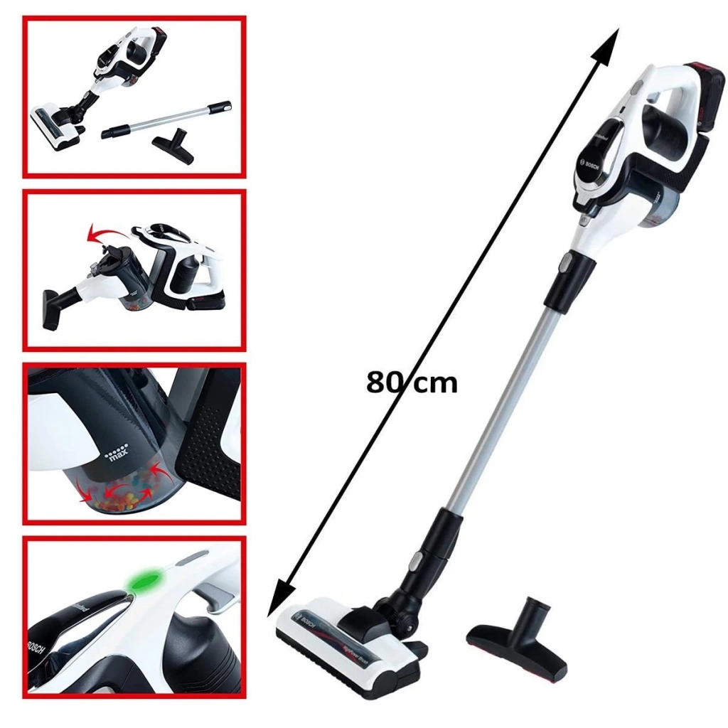 Gerçekçi görünümlü harika bir oyuncak Elektrik Süpürgesi Bosch Sınırsız Elektrikli Süpürge ile tüm bu tozları temizlemeye hazır olun!
