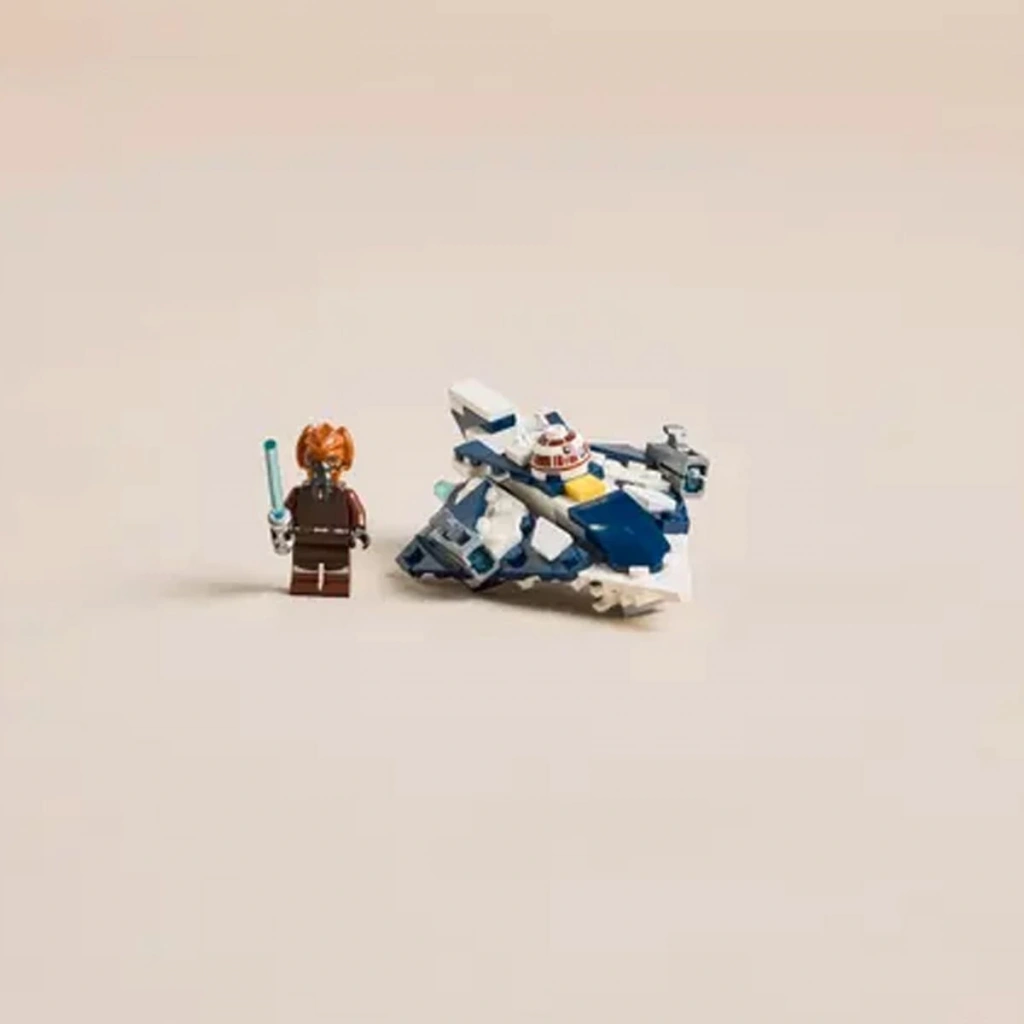 Bu fantastik yapım setine ayrıca Mikro Savaşçı'nın altı takılan mavi ışın kılıcına sahip bir Plo Koon LEGO minifigürü dahildir. Ayrıca, kokpitin önündeki gövdeye takılan ve sanki Star Wars droid'inin Plo Koon'un görevlerinde yardımcı pilotmuş gibi görünmesini sağlayan bir R7-D4 baş parçası da bulunmaktadır.