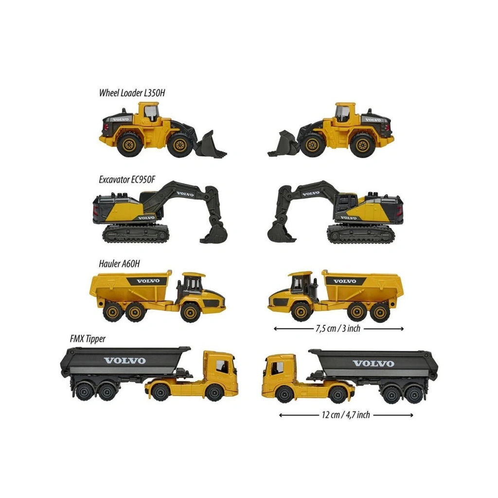 Majorette 4 Volvo inşaat aracından oluşan hediye seti: Ekskavatör, dozer, damperli kamyon, ve tır içermektedir. • Birinci sınıf ve özgün tasarımları sayesinde, Volvo İnşaat serisinden bu 4 araçlık hediye seti her yaştan araç tutkunu için idealdir. •Hareketli parçaları sayesinde birinci sınıf inşaat araçları, kum kazmak ve taşımak için kum havuzu oyuncağı olarak da kullanılabilir. • Bir inşaatçı gibi davranın! Ayrıntılı tasarımlara ve sağlam döküm kabinlere ve gövdelere sahip olan araçların, küçük çocuğunuzu eğlendirmesi garantilidir. • Mükemmel hediye: Tutkulu model araba koleksiyoncuları veya genç hayranlar için bu gerçekçi lisanslı modeller 3 yaş ve üzeri Volvo hayranları için mükemmel bir hediyedir.