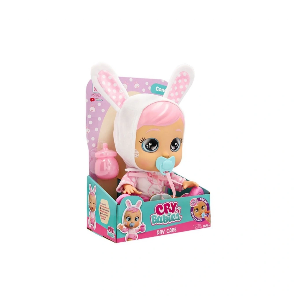 Emzikleri çıkarıldığında gerçek gözyaşları dökerek ağlıyor, ayrıca ağladığında gözlerindeki kalpler ışık saçıyor. Emziği yerine takıldığında hemen sakinleşiyor ve ağlaması duruyor. 30,5 cm boyundaki Cry Babies Günlük Bakım serisi 10 farklı bebek sesi çıkarabiliyor.