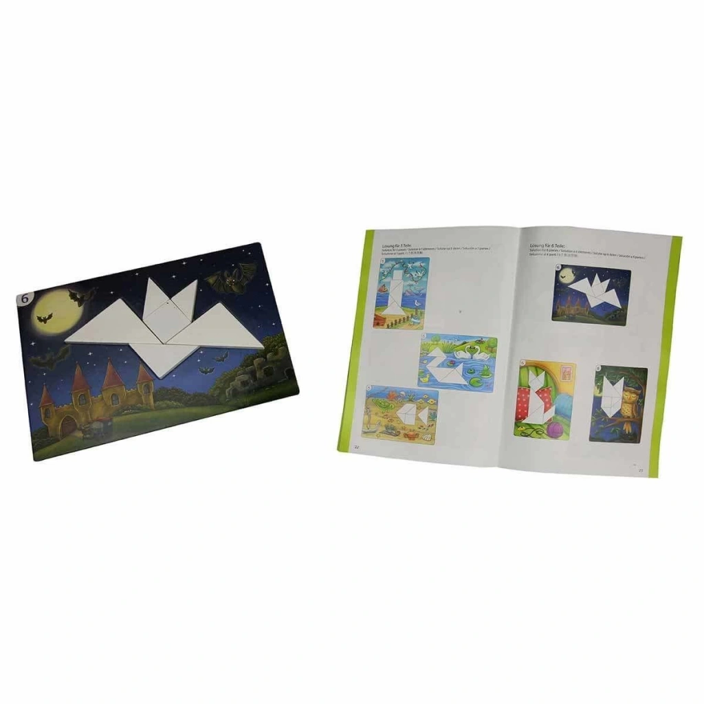 Tangram oyununda bütün yedi parçayı kullanarak figürler oluşturma gibi eski kurallara bağlı kalmanıza gerek yoktur. Arka plandaki renkli resimlerin yardımıyla 3. 4. 5. 6. Ve 7. parçanın dışında şekiller üretmek mümkün.